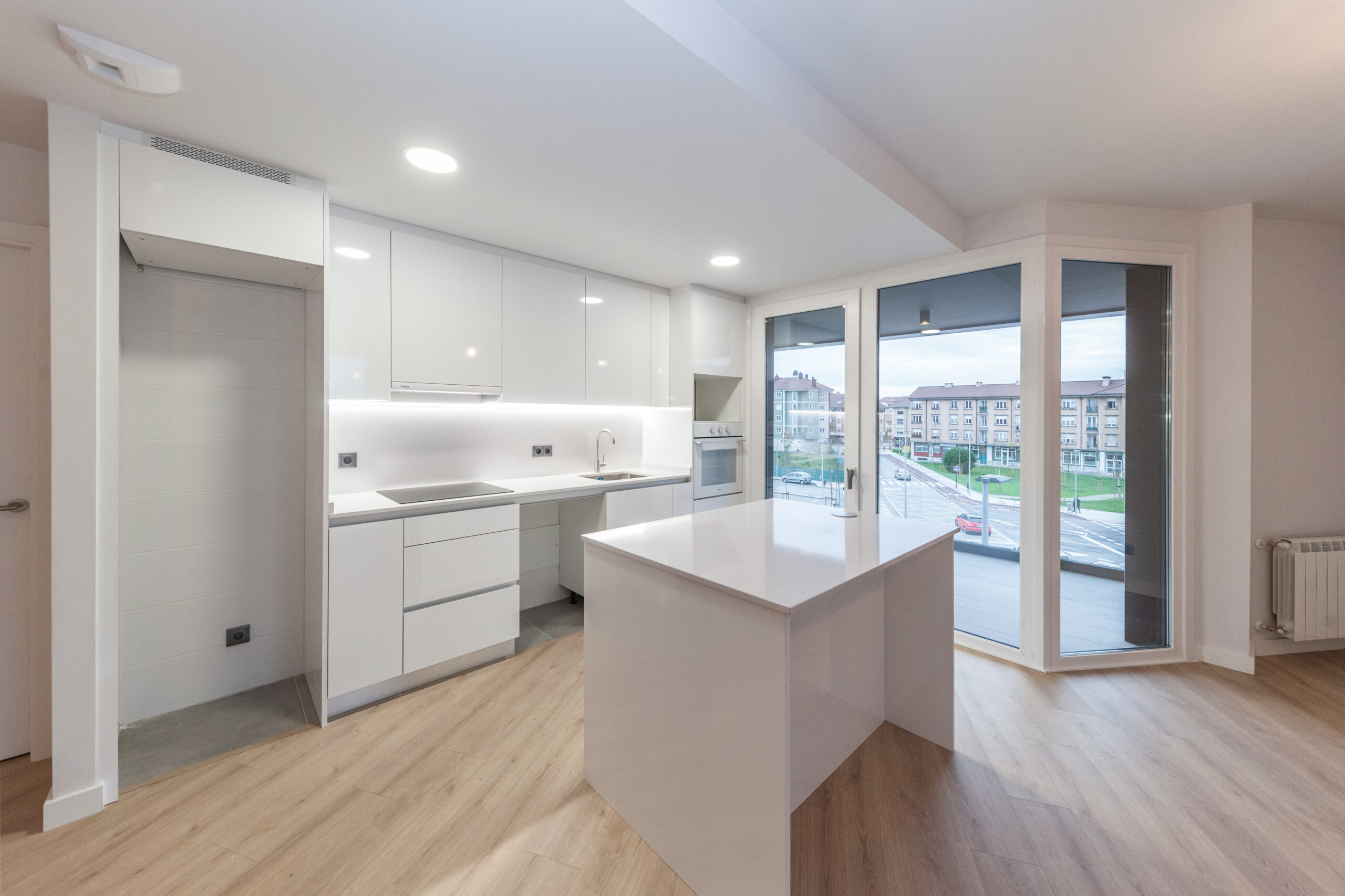 Cocina y gran ventanal a la calle